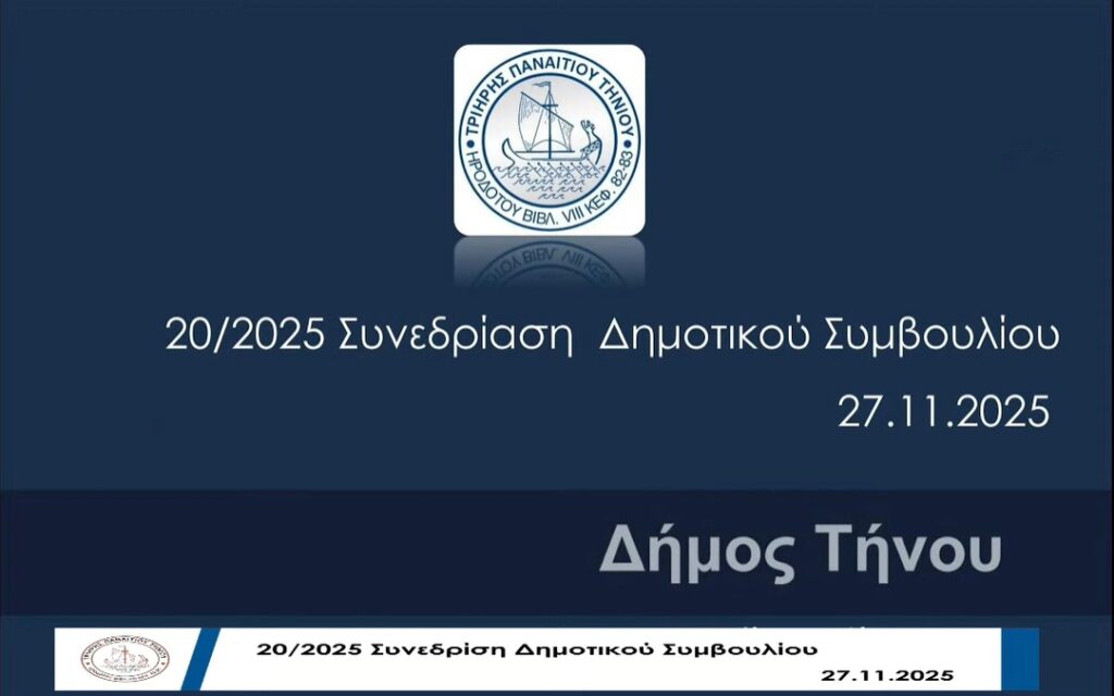 Δήμος Τήνου: Παρακολουθείστε live την Ειδική Συνεδρίαση Λογοδοσίας της Δημοτικής Αρχής του Δήμου Τήνου (6ο Δίμηνο 2025)
