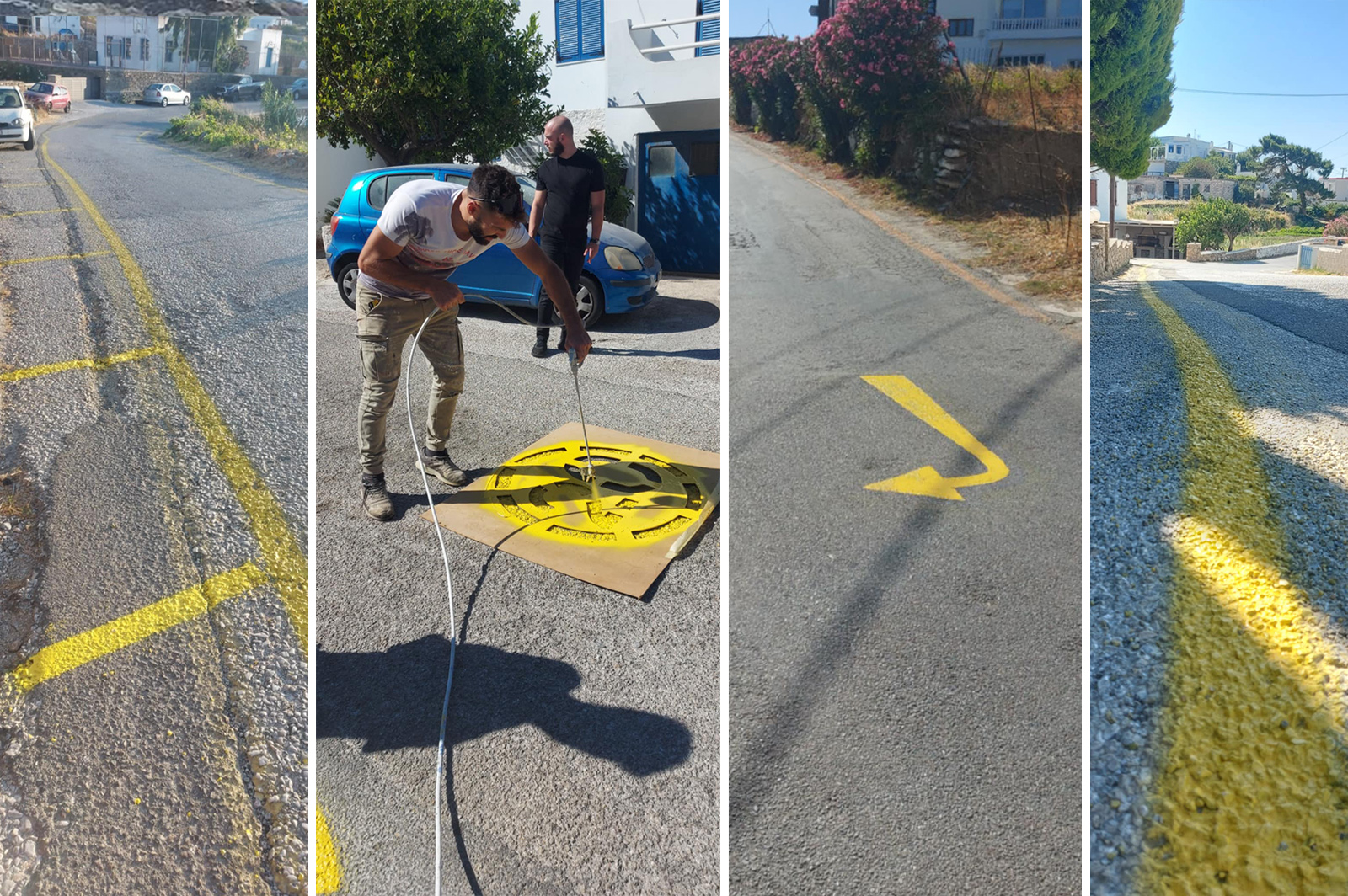 – Διαγραμμίστηκαν κίτρινες γραμμές κατά μήκος του δρόμου του χωριού, όπου δεν επιτρέπεται η στάθμευση.