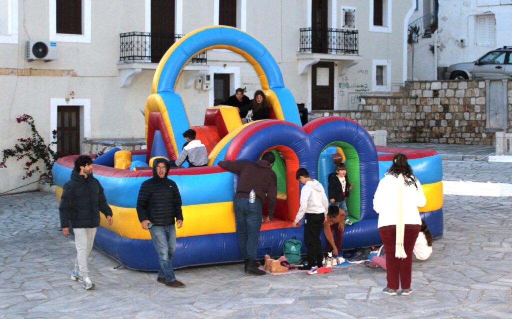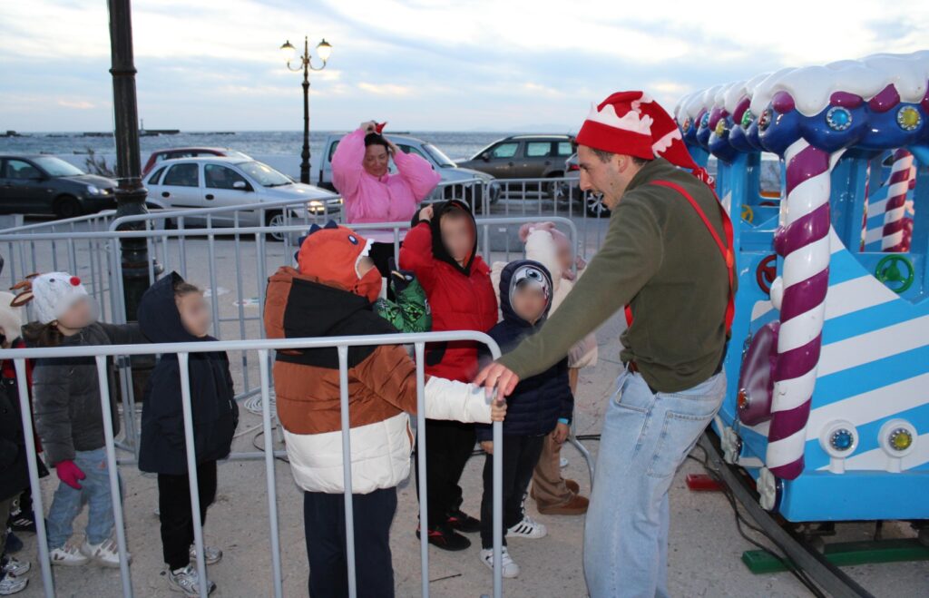 Παρά το κρύο, η περιοχή γέμισε χαμόγελα, παιχνίδι και χαρούμενες φωνές. Το «Παγωμένο Τρενάκι», η φουσκωτή «Διαστημική Πόλη», τα παιχνίδια με τον ανιματέρ, καθώς και οι δράσεις γύρω από το Χριστουγεννιάτικο Δέντρο, δημιούργησαν μια ζεστή και χαρούμενη γιορτινή ατμόσφαιρα.