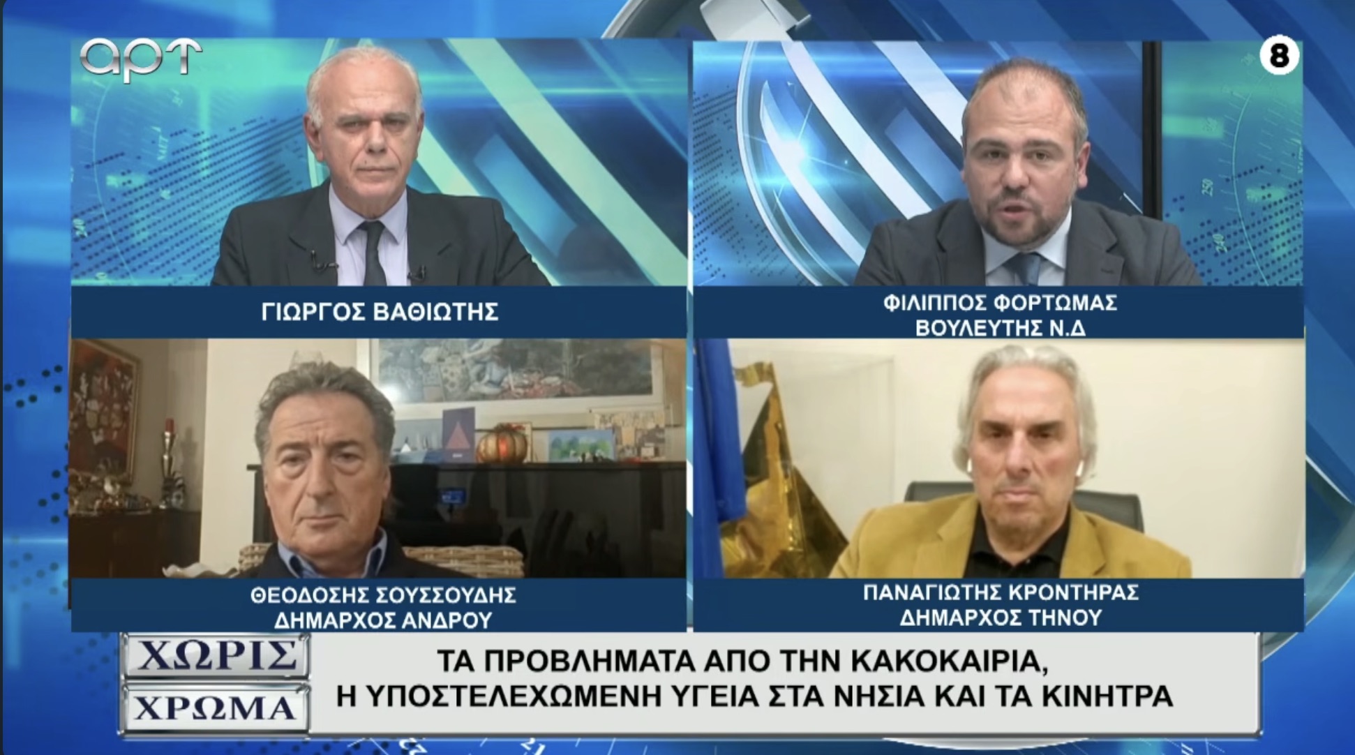 Στην εκπομπή «Χωρίς Χρώμα» και τον δημοσιογράφο Γιώργο Βαθιώτη συμμετείχε ο Δήμαρχος Τήνου, Παναγιώτης Κροντηράς, θέτοντας επί τάπητος τις άμεσες προτεραιότητες και τις διεκδικήσεις της δημοτικής αρχής.