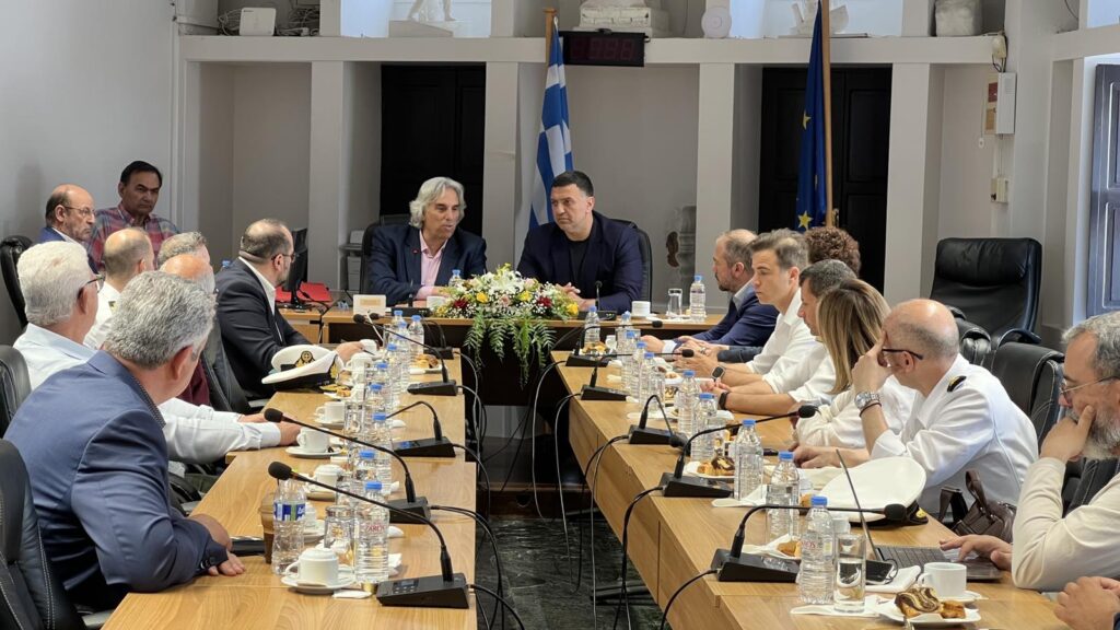 Κατά τη διάρκεια της σύσκεψης, την οποία συγκάλεσε ο Υπουργός, είχαμε την ευκαιρία να θέσουμε επί τάπητος όλα τα κρίσιμα θέματα που αφορούν τη λειτουργία και την ανάπτυξη του λιμένα μας, καθώς και ευρύτερα ζητήματα νησιωτικής πολιτικής.