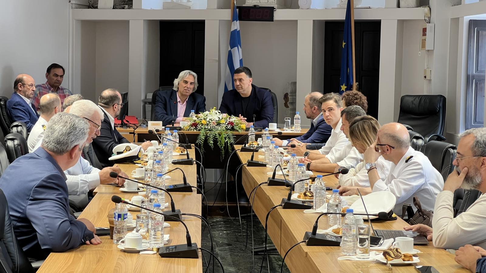 Μετά από επίμονες προσπάθειές μας, η Παρασκευή 09 Μαΐου 2025 ήταν μια μέρα γεμάτη ελπίδα και θετικές εξελίξεις για την Τήνο μας! Με ιδιαίτερη χαρά και αισιοδοξία, σας ενημερώνω και από την πλευρά μου για την εξαιρετικά εποικοδομητική συνάντηση που είχα την Παρασκευή στο Δημαρχείο με τον Υπουργό Ναυτιλίας και Νησιωτικής Πολιτικής, κύριο Βασίλη Κικίλια, τον οποίο συνόδευαν ο Γενικός Γραμματέας Νησιωτικής Πολιτικής κος Μανώλης Κουτουλάκης, ο τοπικός μας Βουλευτής κ. Φίλιππος Φόρτωμας, ο Αρχηγός του Λιμενικού Σώματος, ο Διοικητής της 6ης Περιφερειακής Διοίκησης Λιμενικού Σώματος και επιτελικά στελέχη του Υπουργείου. Η παρουσία τους στην Τήνο αποδεικνύει το έμπρακτο κεντρικό ενδιαφέρον για τα ζητήματα του νησιού μας.
