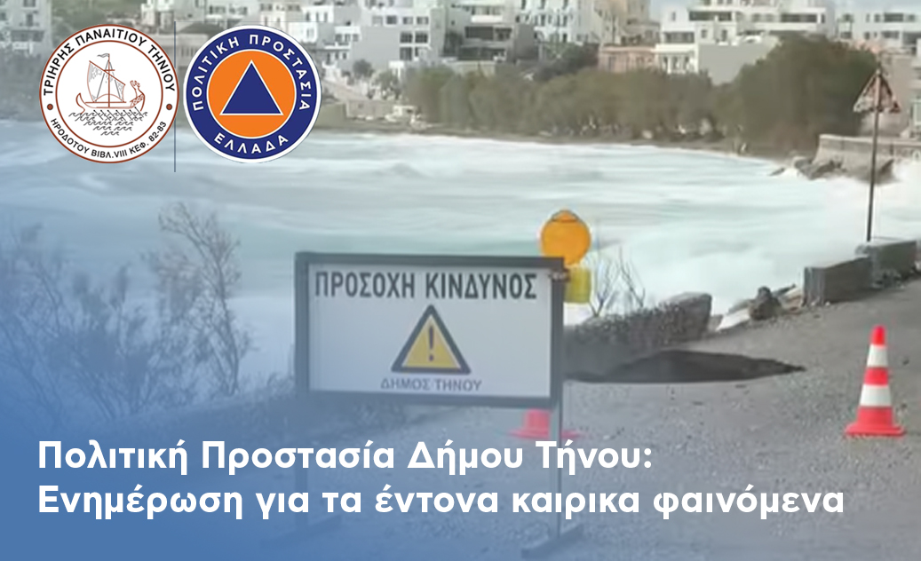 Πολιτική Προστασία Δήμου Τήνου: Ενημέρωση για τα έντονα καιρικα φαινόμενα που επικρατούν στο νησί