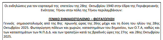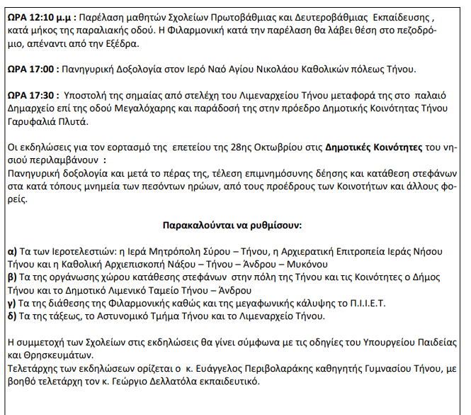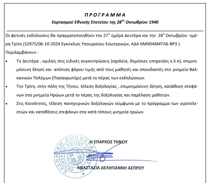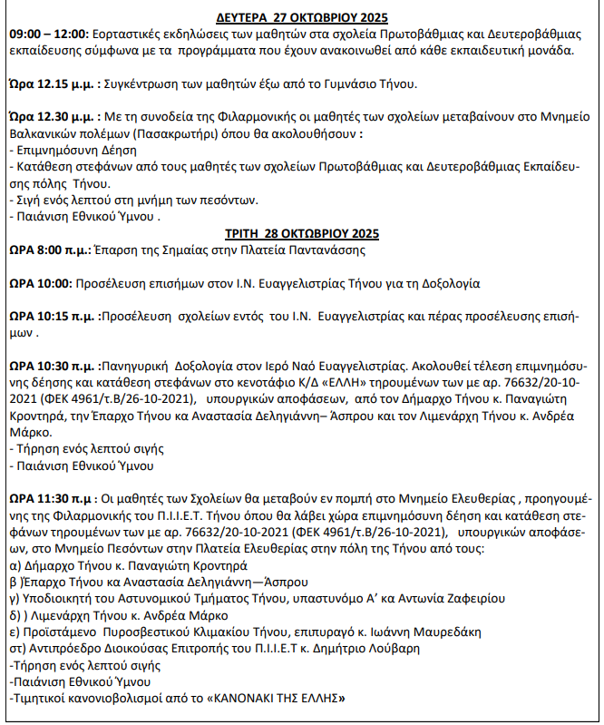 ΠΡΟΓΡΑΜΜΑ Εορτασμού της Εθνικής Επετείου της 28ης Οκτωβρίου 1940