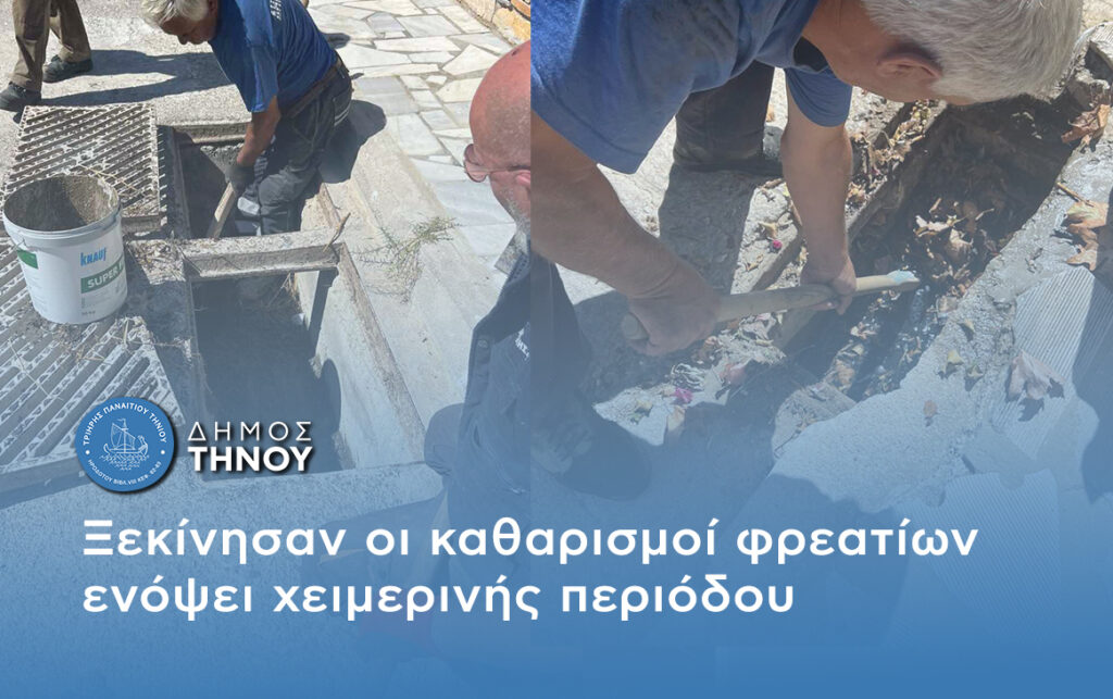 Όπως και πέρυσι, έτσι και φέτος, η Υπηρεσία Ύδρευσης του Δήμου Τήνου υλοποιεί εκτεταμένο πρόγραμμα εργασιών, που αφορά σχεδόν 320 φρεάτια, με στόχο την πρόληψη πλημμυρικών φαινομένων και τη θωράκιση του νησιού απέναντι στα ακραία καιρικά φαινόμενα.